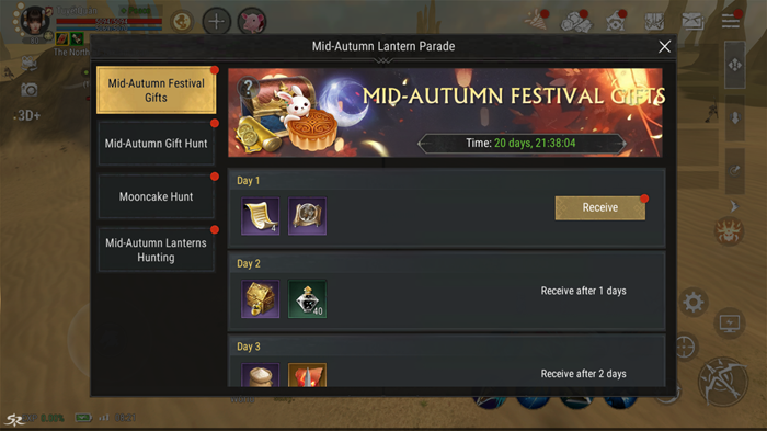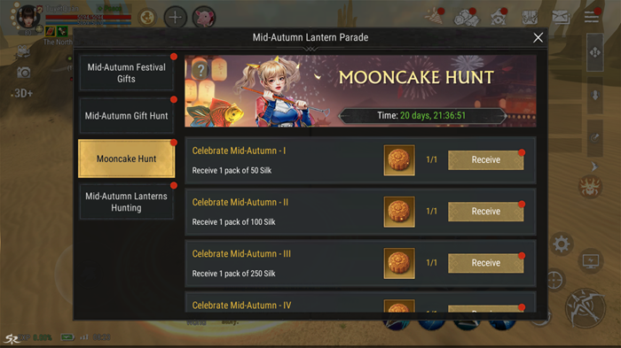 - During the event, Travelers should complete the event mission list to receive Mooncakes and participate in the lucky spin Mid-Autumn Festival Lantern Hunt.