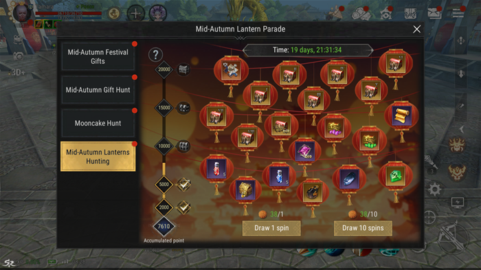 - One spin will earn 10 points, accumulate points to reach the reward milestones to receive Mid-Autumn Ticket to open and choose one of the Seal of Star Equipment