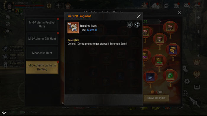 To welcome a warm Mid-Autumn Festival, the Mid-Autumn Lantern Parade event has officially opened at Silkroad Origin Mobile. This is the only special event with Warwolf Fragment, Travelers don't miss your chance to own it!