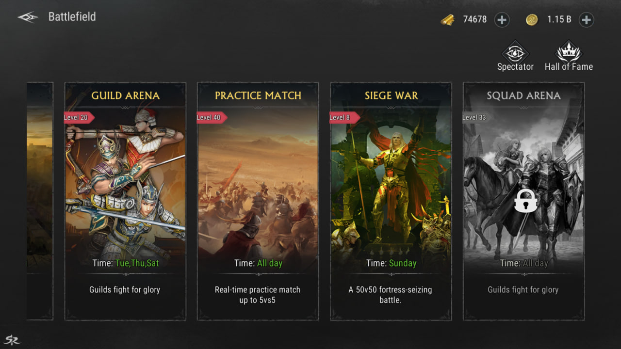 • Two Guilds will compete directly for the fortress and can attack each other.