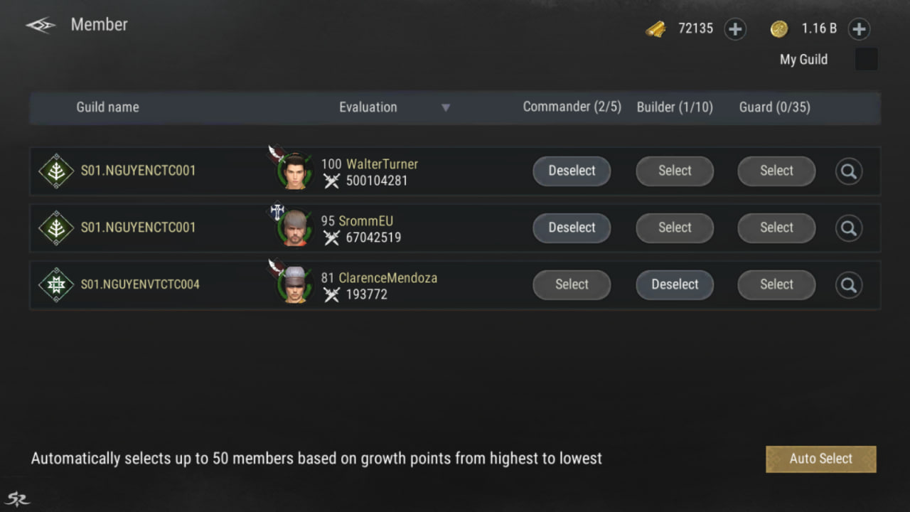 • Alliance Guild: Can form an alliance with either the Attacking Guild or the Defending Guild to support in battle