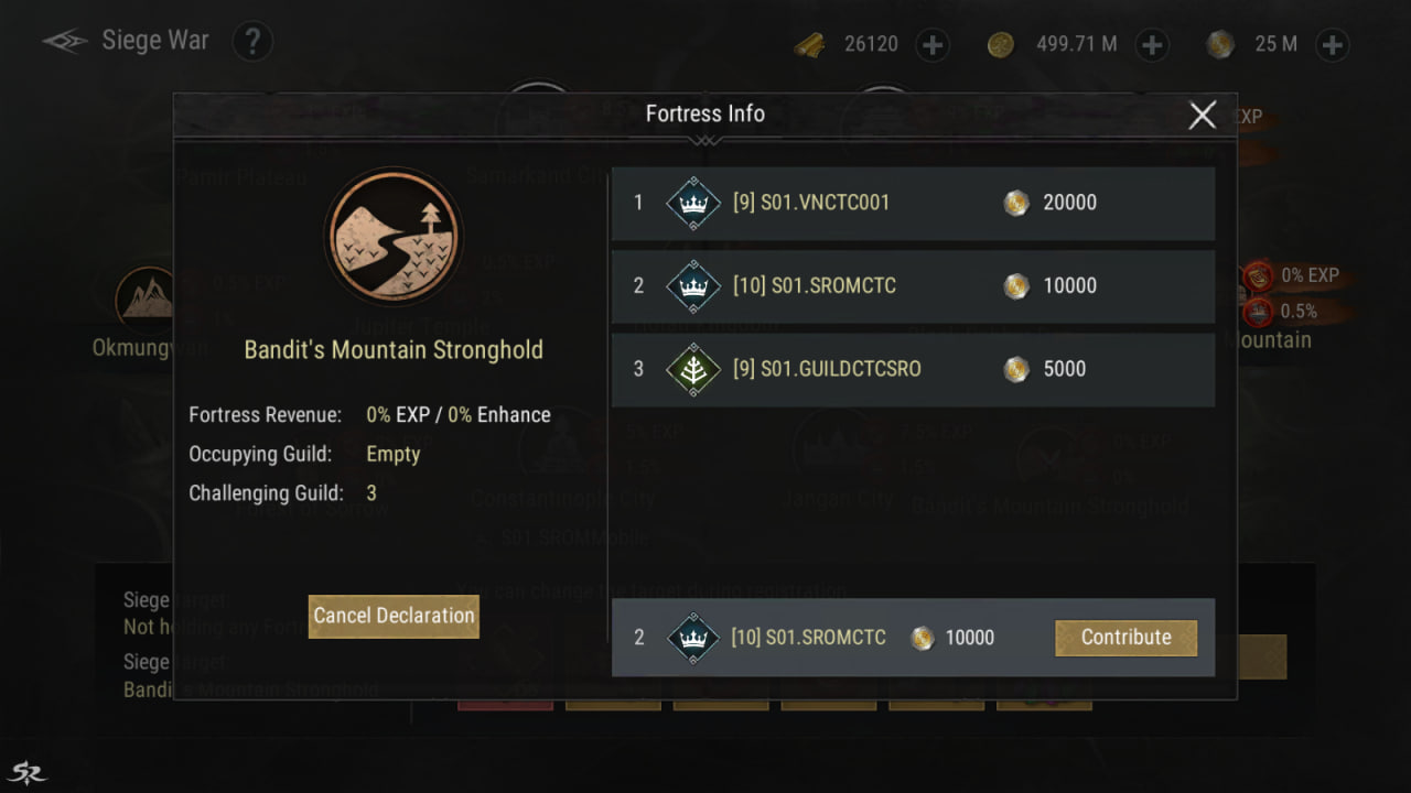 • Step 3: After the registration period ends, the Guild with the highest deposit earns the right to declare war on that fortress.