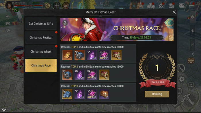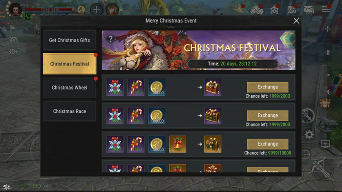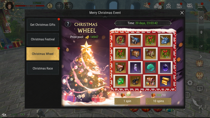 - ในช่วงเวลากิจกรรม สามารถใช้ ตั๋วคริสต์มาส เพื่อทำการหมุนวงล้อรางวัล