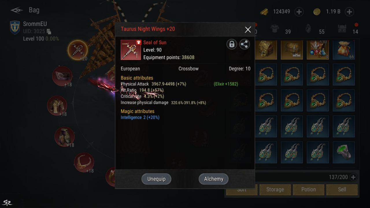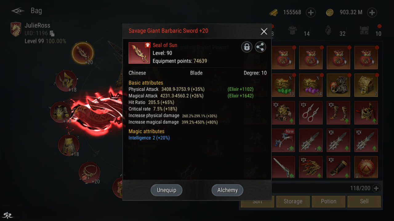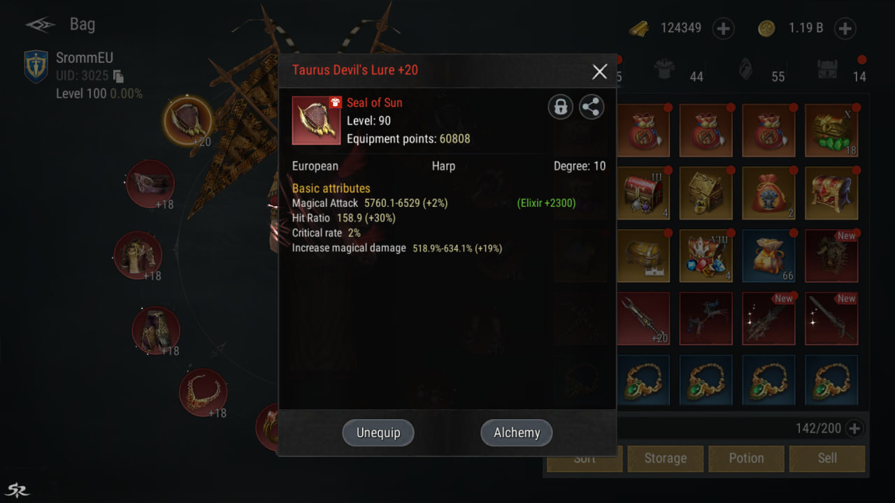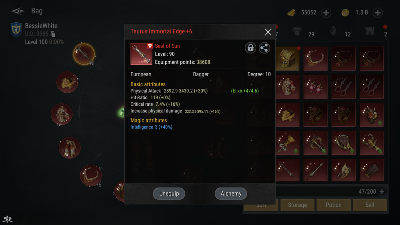 - ระดับของอุปกรณ์จะสอดคล้องกับระดับของตัวละคร โดยมีรายละเอียดดังนี้: